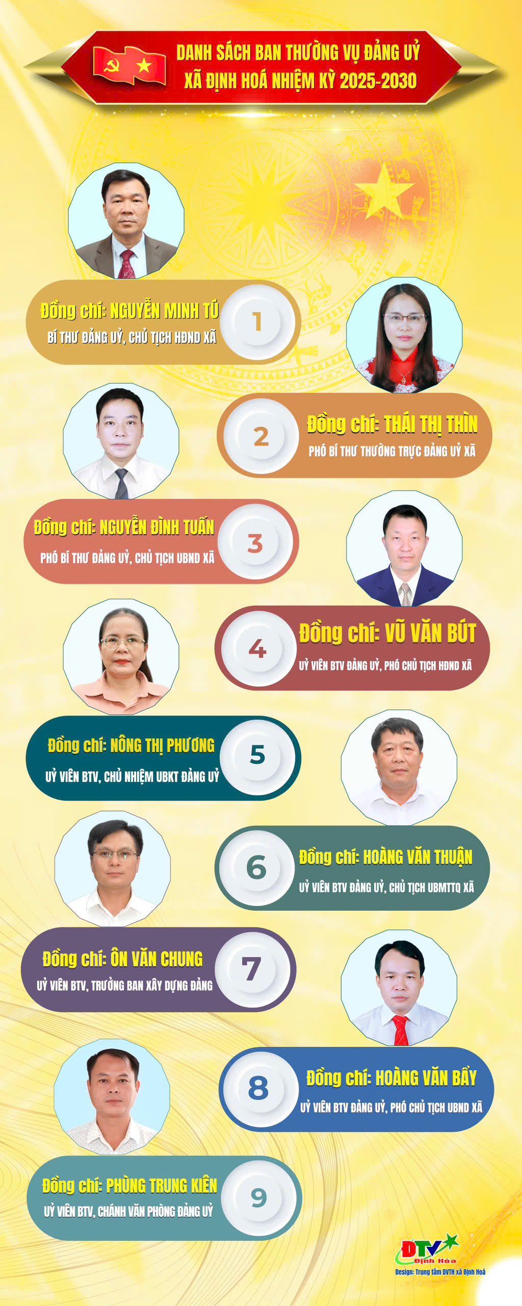 Danh sách các đồng chí trong Ban thường vụ Đảng uỷ xã Định Hóa, tỉnh Thái Nguyên, nhiệm kỳ 2025 - 2030