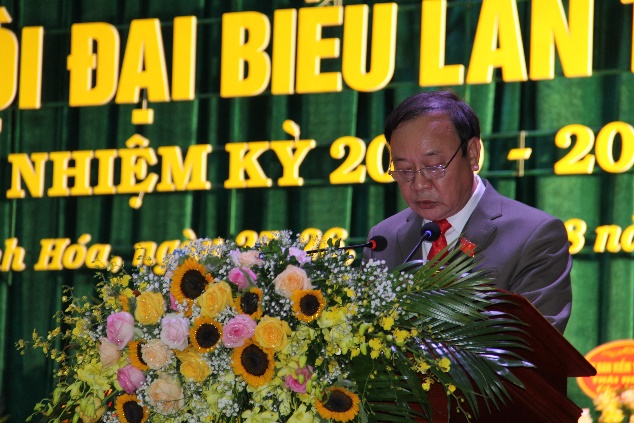 Đồng chí Nguyễn Thanh Hải - Ủy viên BCH Trung ương Đảng, Bí thư Tỉnh ủy, Trưởng đoàn Đại biểu Quốc hội tỉnh phát biểu chúc mừng Đại hội.