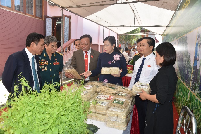 Các đại biểu tham quan khu triển lãm ảnh các thành tựu kinh tế - xã hội huyện giai đoạn 2015 - 2020.