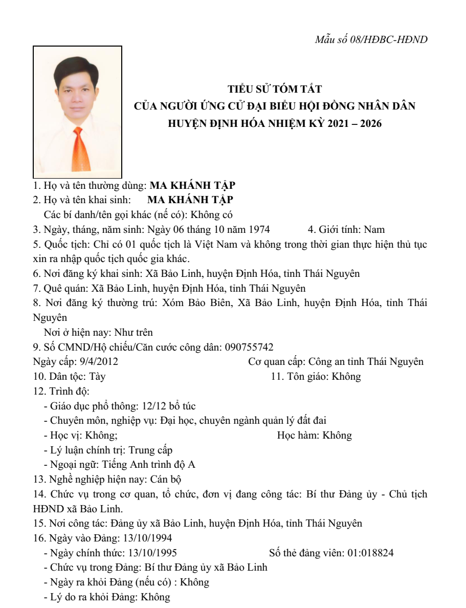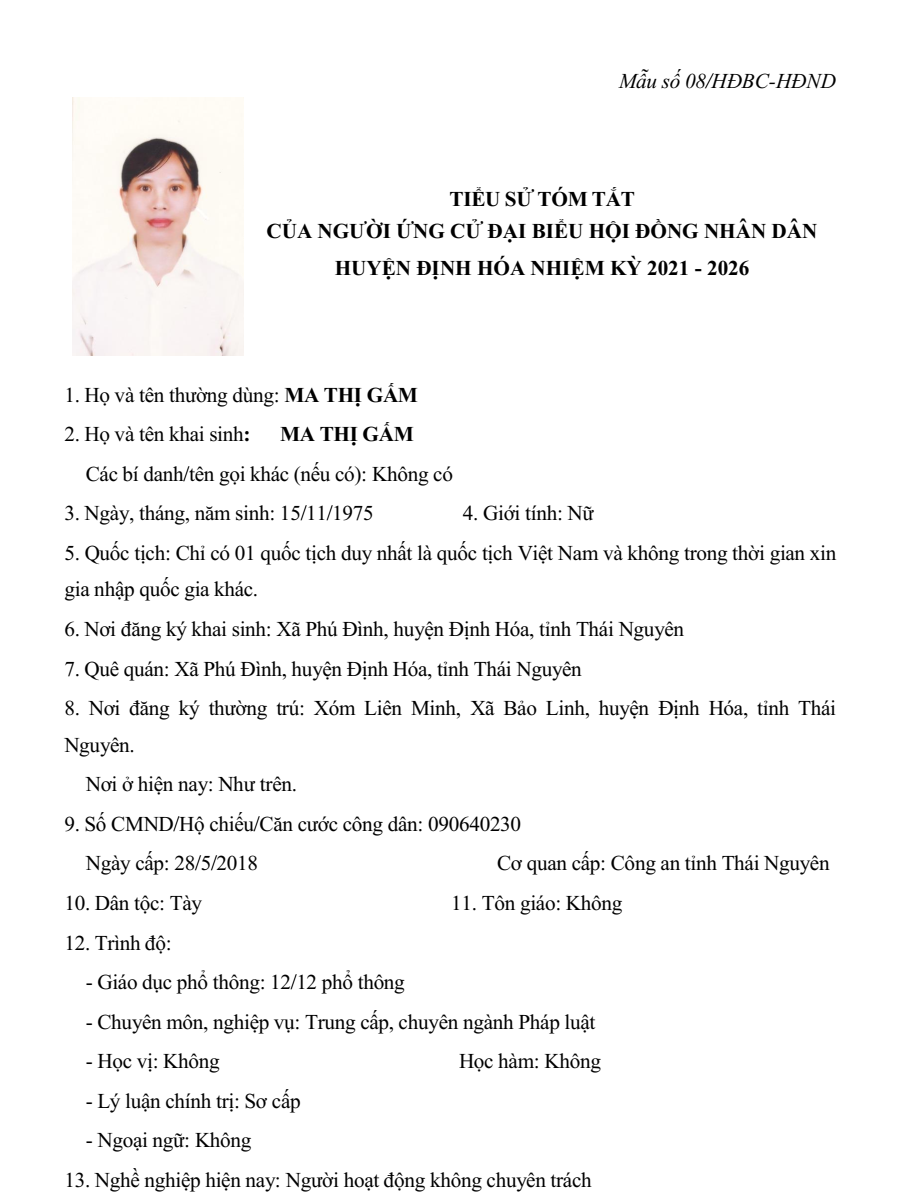 Gồm: xã Bảo Linh, xã Phúc Chu, xã Thanh Định thuộc huyện Định Hóa, tỉnh Thái Nguyên